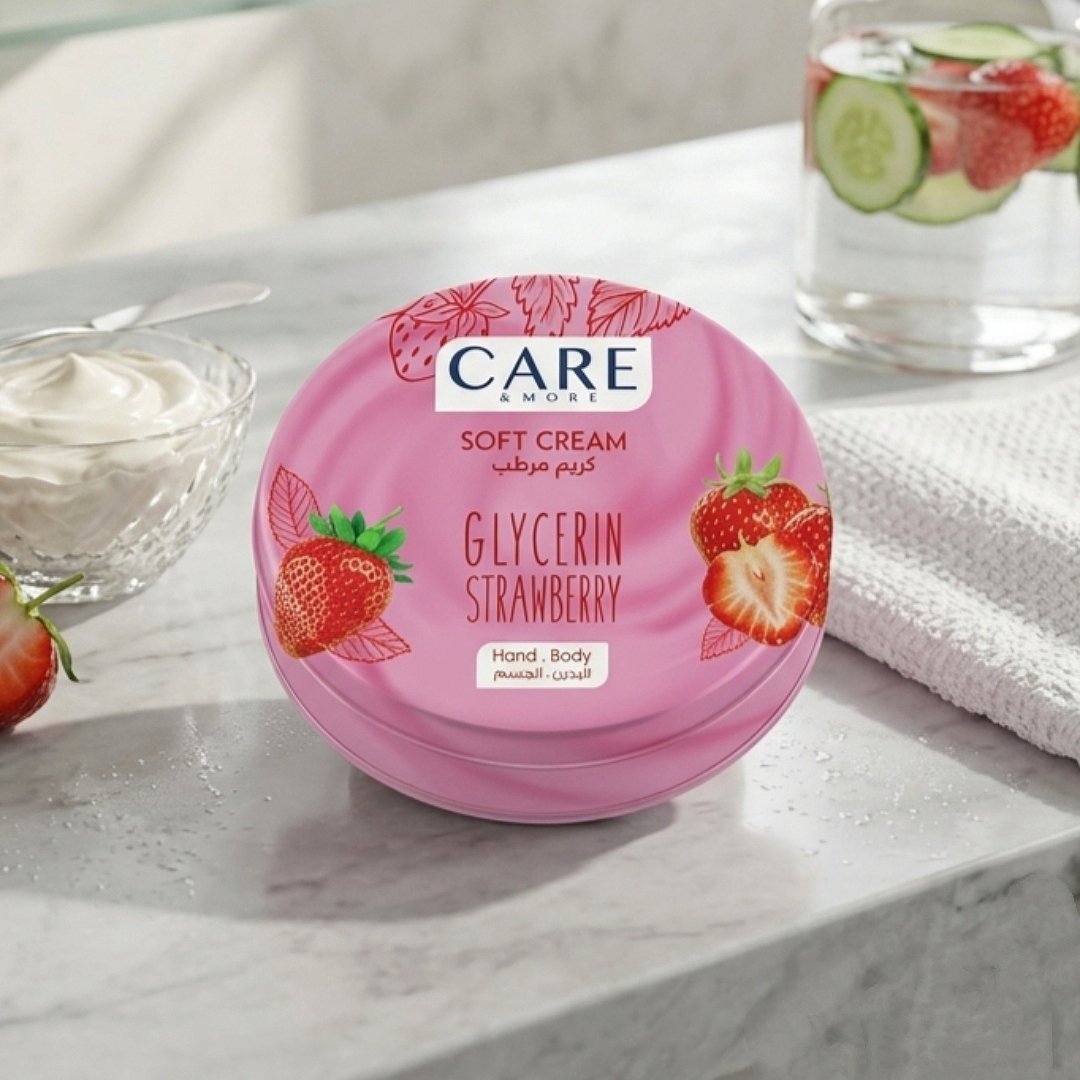 مرطب كير اند مور ستروبري الاصلي للأيد والجسم يعالج بشكل أساسي الجفاف الشديد وخشونة الجلد ويمنح البشرة نعومة فائقة ورائحة عطرية تدوم مناسب للاستخدام اليومي 75 مل